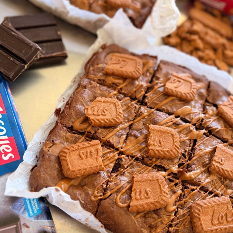 Rich and fudgy Belgian chocolate brownies swirled with creamy Biscoff spread.